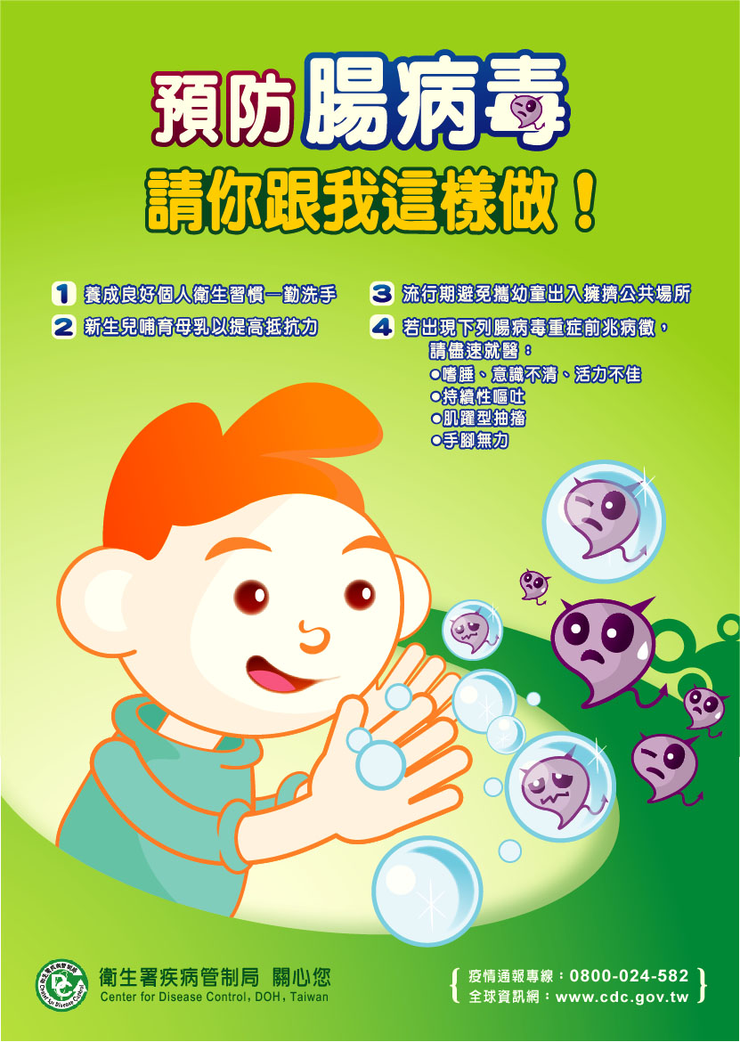 近幾年在H1N1新型流感、腸病毒、SARS等侵襲威脅下,咳嗽禮節與手部衛生的重要性不言可喻,身為媽媽的音樂才女黃韻玲特地為疾管局創作一首防疫兒歌獻給全國小朋友,藝人黃嘉千與台灣女婿夏克立帶頭獻唱,並馬上教會小童星皮蛋等三十幾位小朋友現場大合唱,也藉國際洗手日提醒社會大眾,養成用肥皂洗手的良好習慣。
